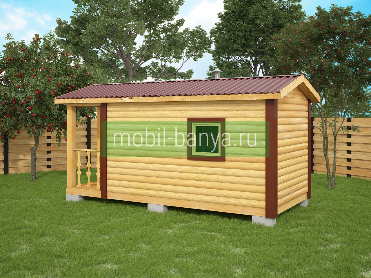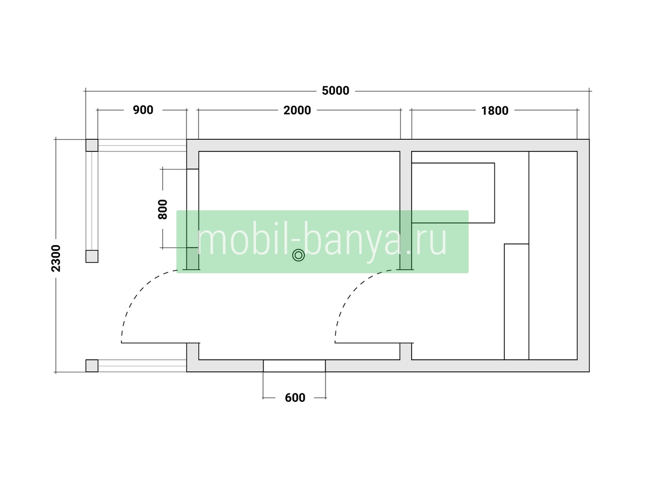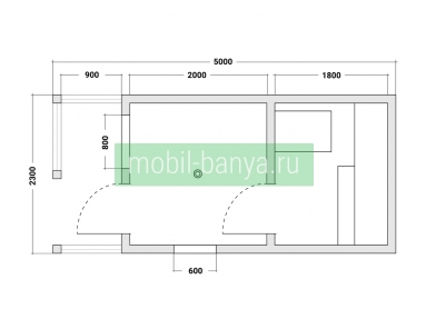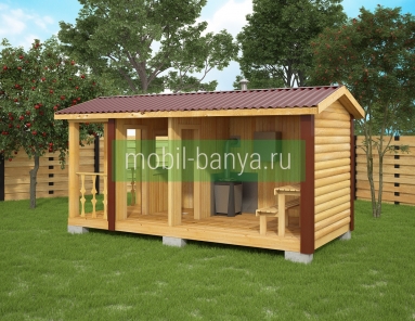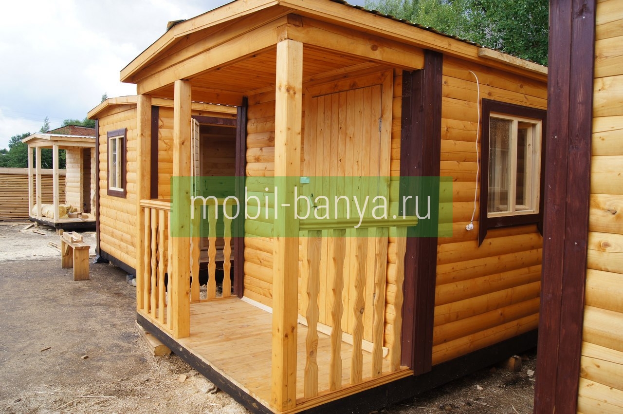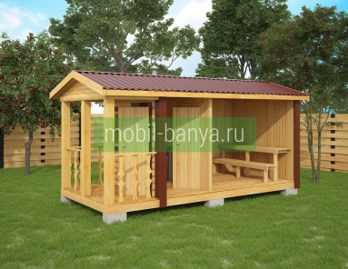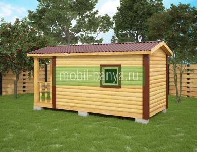 Перевозная мобильная баня 2,3×5 м. с крылечком