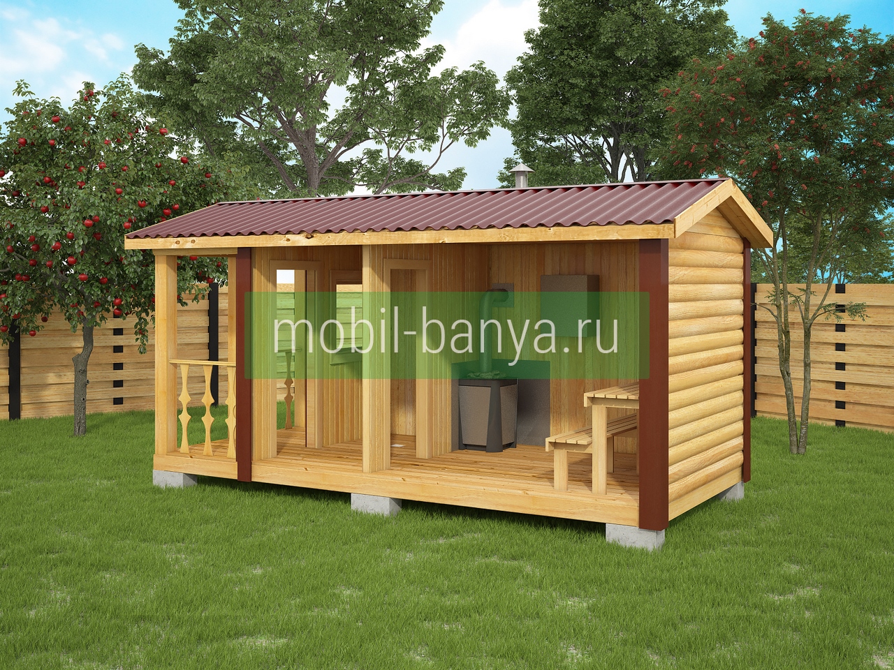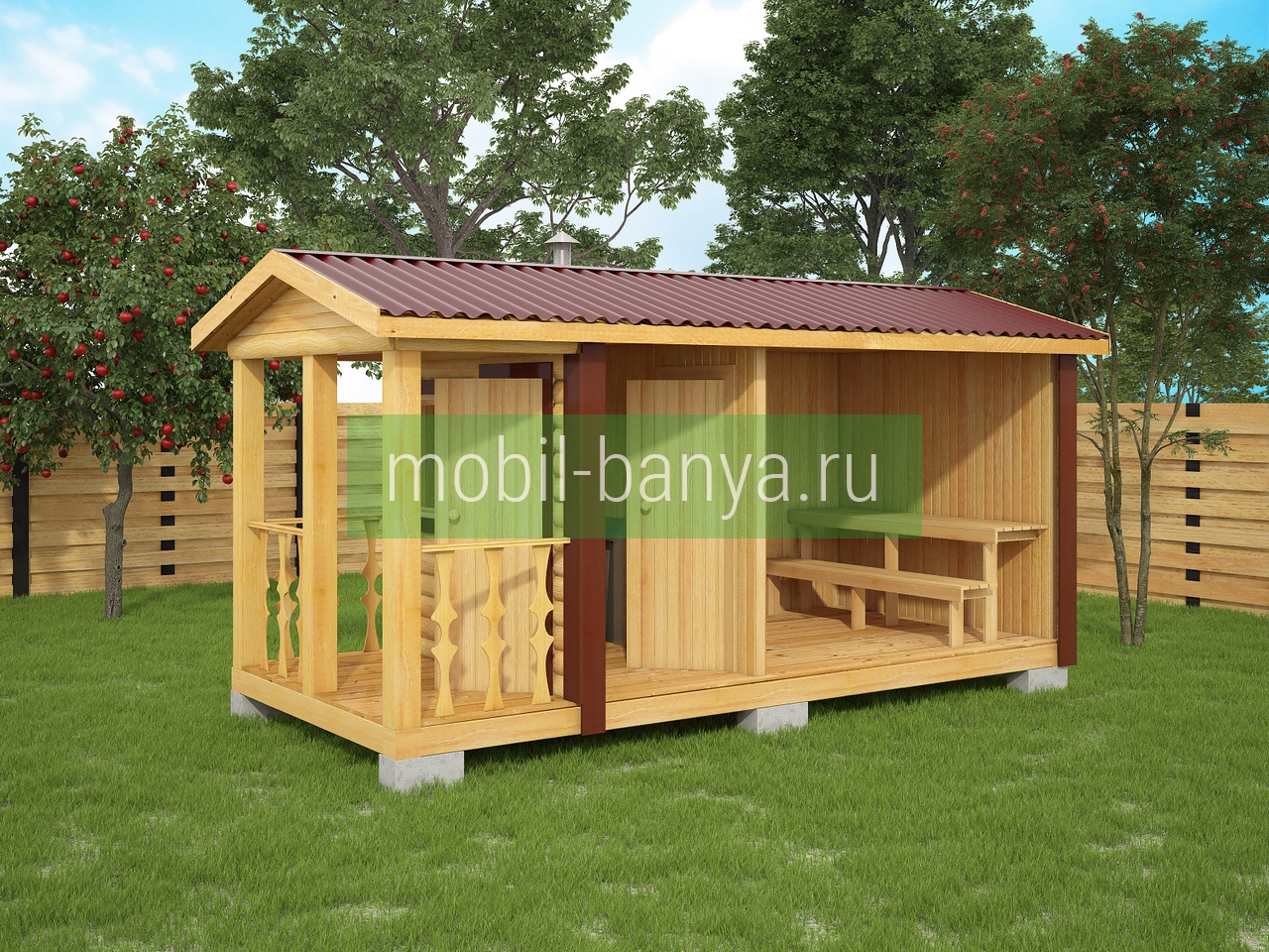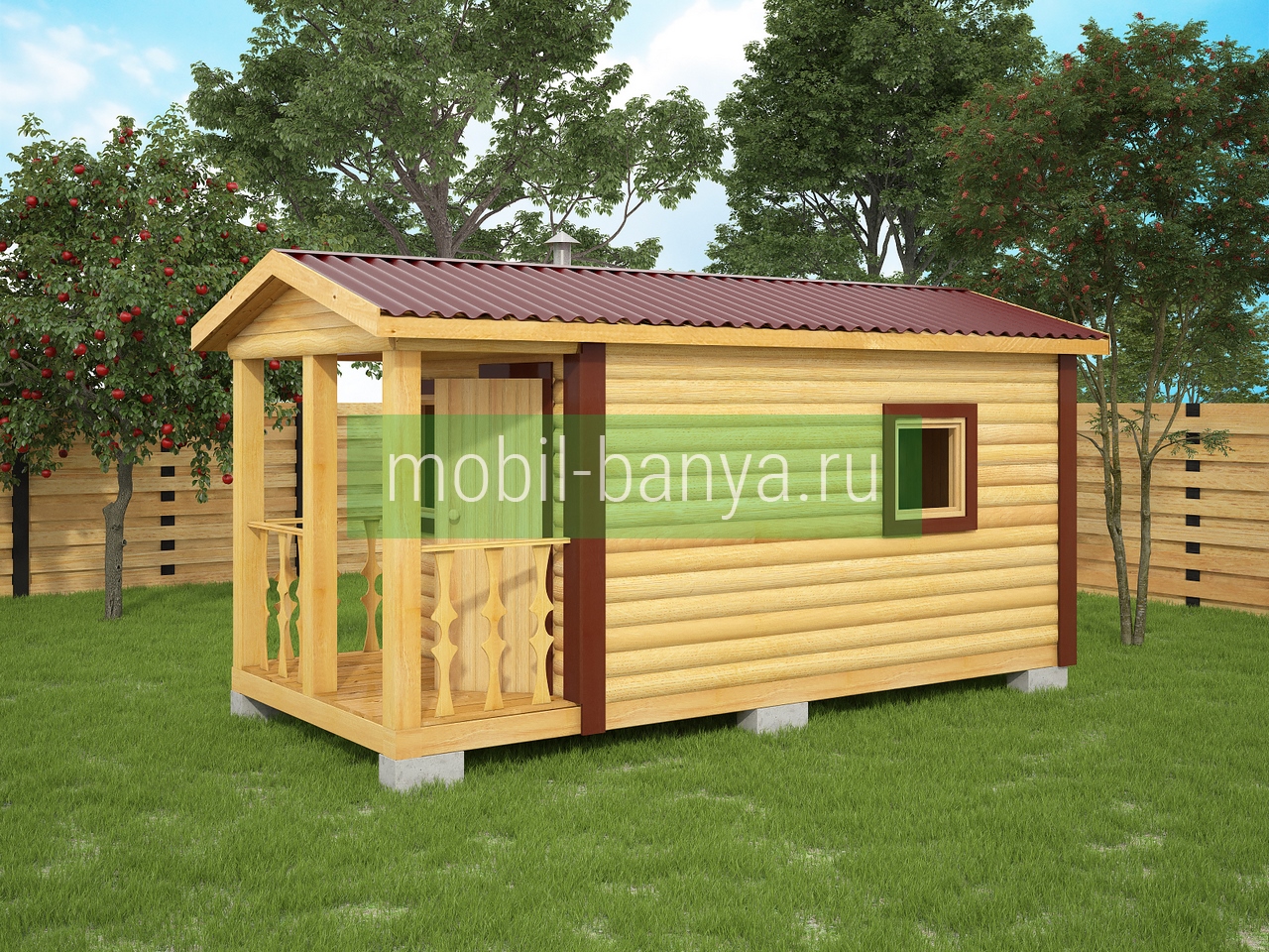 Перевозная мобильная баня 2,3×5 м. с крылечком