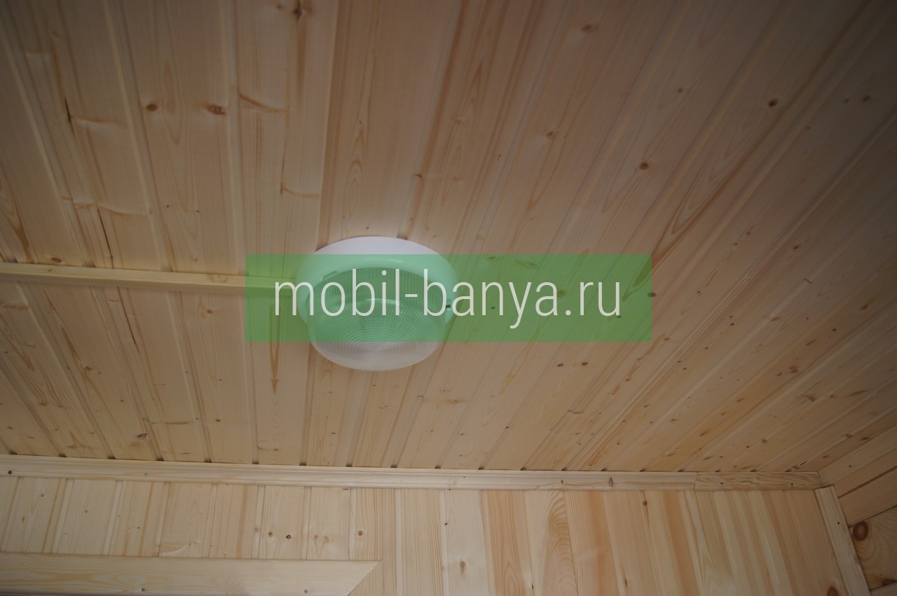 Раздевалка: потолок, перегородки обшиваются вагонкой хвойных пород древесины. На стыки углов стен, потолка и пола прибивается плинтус.